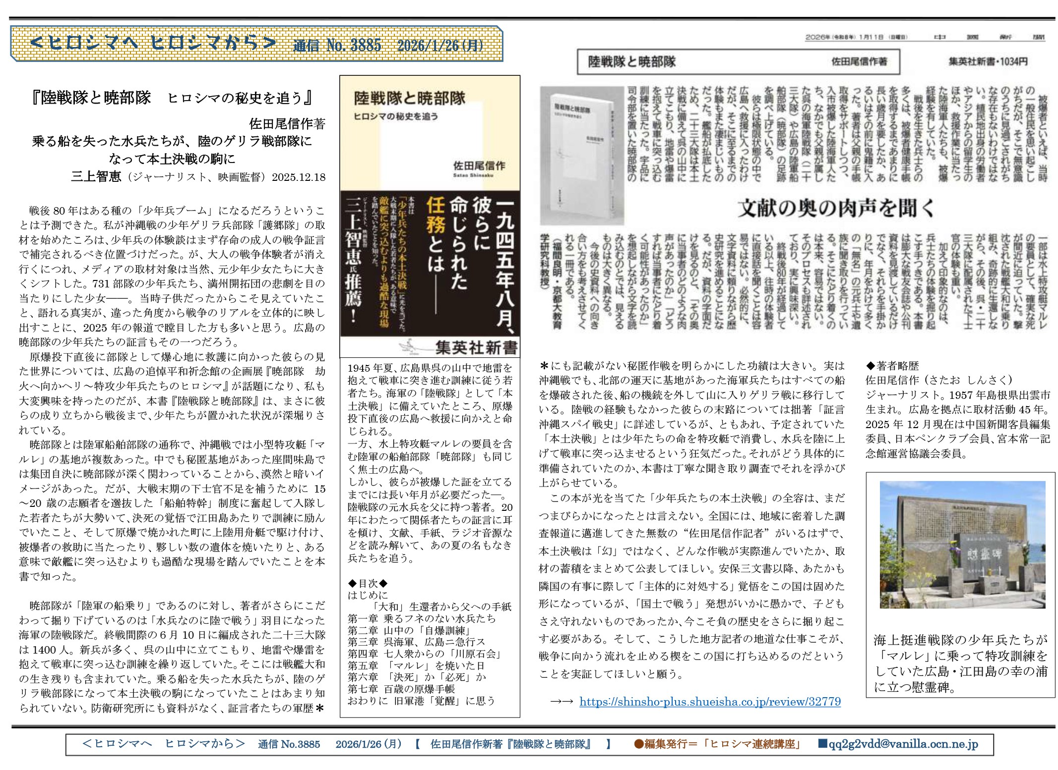 そして今朝届いた<ヒロシマヘ ヒロシマから>通信№3885もご紹介します。