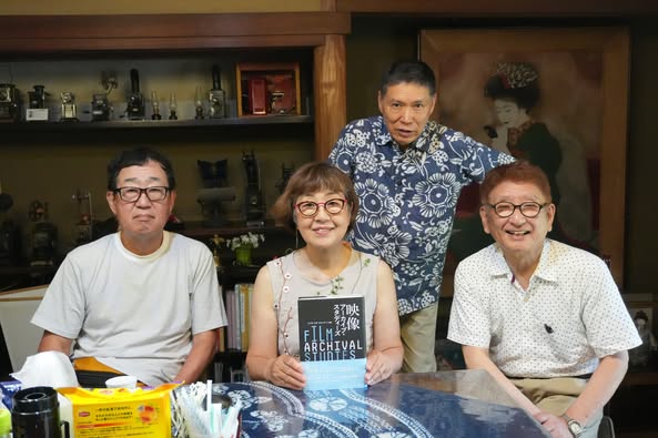 6月30日に関東からお越しの高橋克三さん(立っている男性)。前日に中国からアニメーションの勉強に留学している前述女子学生二人の役に立てたらと思い、彼が日本側代表を務めているアジア国際青少年映画祭のアニメーションについて問い合わせをしたばかりで、その翌日にお目にかかれたことに“驚き桃の木山椒の木”。実は大病を患われて心配していましたが、ご覧の通り元気に復活。実際にお目掛かって安心すると同時に、いろんな話から刺激を受けました。朝ドラ「あんぱん」で「絶望の隣は希望」というセリフが出てきますが、高橋さんを見ていて、「本当にそうだ」と思います。