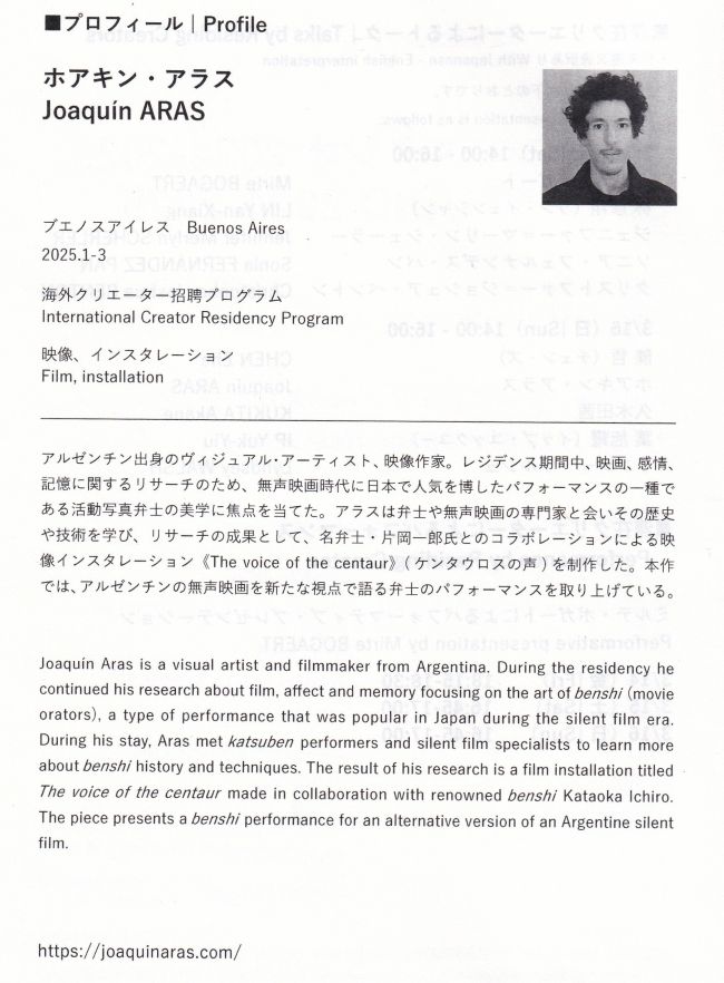 その後、3月14日午後と15~16日に東京都墨田区立川TOKASのレジデンシーで作品を公開すると案内を受け取りました。丁度、3月15日に山路ふみ子文化財団さんから、ホテルニューオオタニで「財団解散に伴う感謝の集い」をすると案内をいただいていたこともあり、午前中に作品を見に行って来ました。その折のことは、こちらで書いています。東京都歴史文化財団さんが気を使ってくださって、通訳付きでアラスさんとお会いできました。