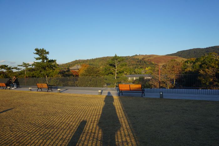 奈良公園バスターミナル屋上は開放されていて、遠くに若草山が、左手には東大寺大仏殿が見えています。1月10日と11日に “尾花deキネマの正月上映会in東大寺”で、清水宏監督がつくられた『大仏さまと子供たち』(1952年)が上映されます。戦争孤児を引き取って共同生活を送っていた清水監督が、その孤児を役者にして自主製作した「蜂の巣映画」三部作の三作目です。問い合わせはこちらへどうぞ。