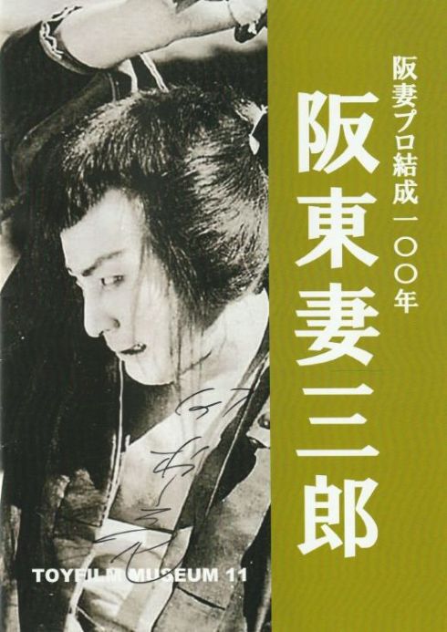 私どもが阪妻プロ結成100年を記念して今年作った上掲小冊も会場で販売させて頂きました。お買い上げいただいた皆さま、誠にありがとうございました。その中のお一人、奈良にお住いの喜多さん宅敷地内にあった倉庫をスタジオにして『雄呂血』の室内が撮影されたとお聞きしてびっくりしました。上映会場のすぐ近くらしいです。今回の催しは阪妻の四男俳優田村亮さんのご子息で俳優の幸士さんが呼び掛けて実現しました。特別に亮さんもゲスト出演され、ミーハーの私はご挨拶方々訪ねた控室で亮さんにサインを頂戴しました。この冊子作成にあたっては、奥様にもお世話になりました。改めて御礼を申し上げます。