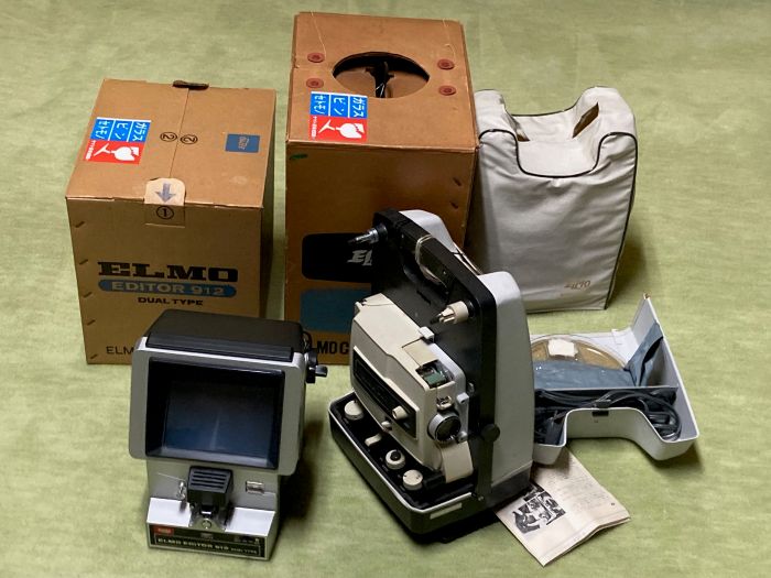 11月23日関東にお住いの森川春子様から、ELMOの映写機EP-AとEDITOR912 DUALTYPEを寄贈いただきました。ビューワーは以前お客様にお貸ししたままで戻っていないので助かります。小型映画繋がりでいえば、パテ・ベビーフィルムについてNHK福井放送局のディレクターさんから問い合わせの電話をいただき、12月1日に取材に来られました。