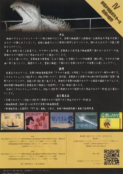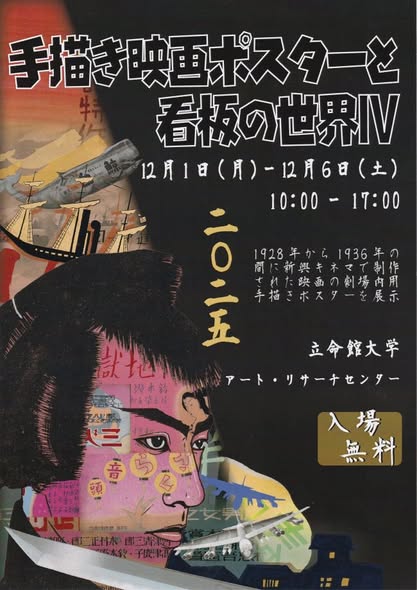 11月21日立命館大学教授で当館正会員でもある竹田章作先生が、12月1~6日10時~17時、立命館大学アート・リサーチセンターで開催される「手描き映画ポスターと看板の世界Ⅳ」のチラシとポスターを持参。