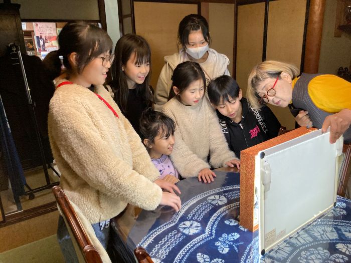 11月21日近くの西陣中央小学校に通う小学5年生のシェニファーさんが、また友達を連れて遊びに来てくれました。早速16日完成披露したばかりの“オンブロチネマ”を見せてあげました。