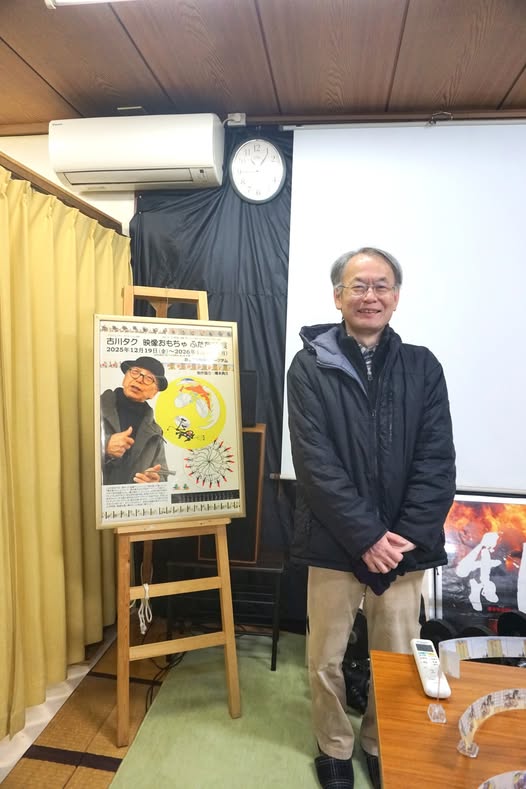 2026年最初のお客様は、段ボールアート作家として目覚ましい活躍をされている千光士義和さん。古川タク先生の展覧会「映像おもちゃふたたび展」を見に来てくださいました。お土産に『Wings』(塚本学院校友会誌№47、2026年1月)を持ってきてくださいました。