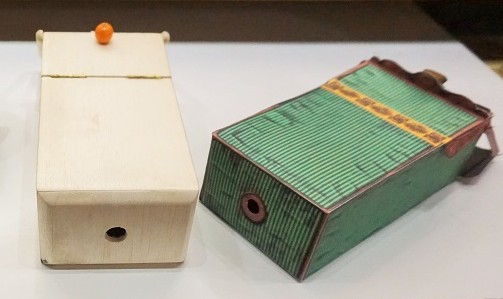 最初に1日にお越しいただいた東京大学史料編纂所の谷 昭佳先生。お帰りになる前のおしゃべりで、どのようなお仕事をされているのかが分かったのですが、関西でのお仕事があり、以前から気になっていた場所ということで足を伸ばして下さいました。情報がないままいつものように1階の展示物から説明を始めたのですが、下掲の初期の光学玩具“ポリオラマ・パノプティーク”に他の人以上に関心を示して下さったのが印象深く。