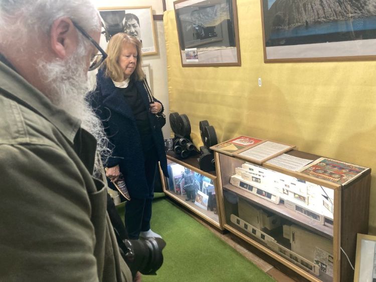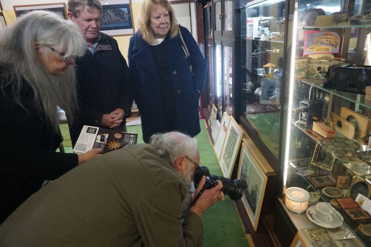 3月7日は海外からのお客様が続きました。最初にイギリスのマジックランタン協会(MSL)会員のDerek AdamsさんとDolly Whilemsさんご夫妻とご友人ご夫妻が来館。2015年10月に元会長のジョージ・オークランドさんとメアリアン夫人が来館されたことがありましたが、お二人も熱心な会員であり、オークランドご夫妻と旧知の間柄。デレクさんもとても熱心に一つ一つをご覧いただき、立派なカメラで熱心に撮影しておられました。いずれMSL協会の会報誌で紹介して頂けるかもしれないと、勝手に期待しております。