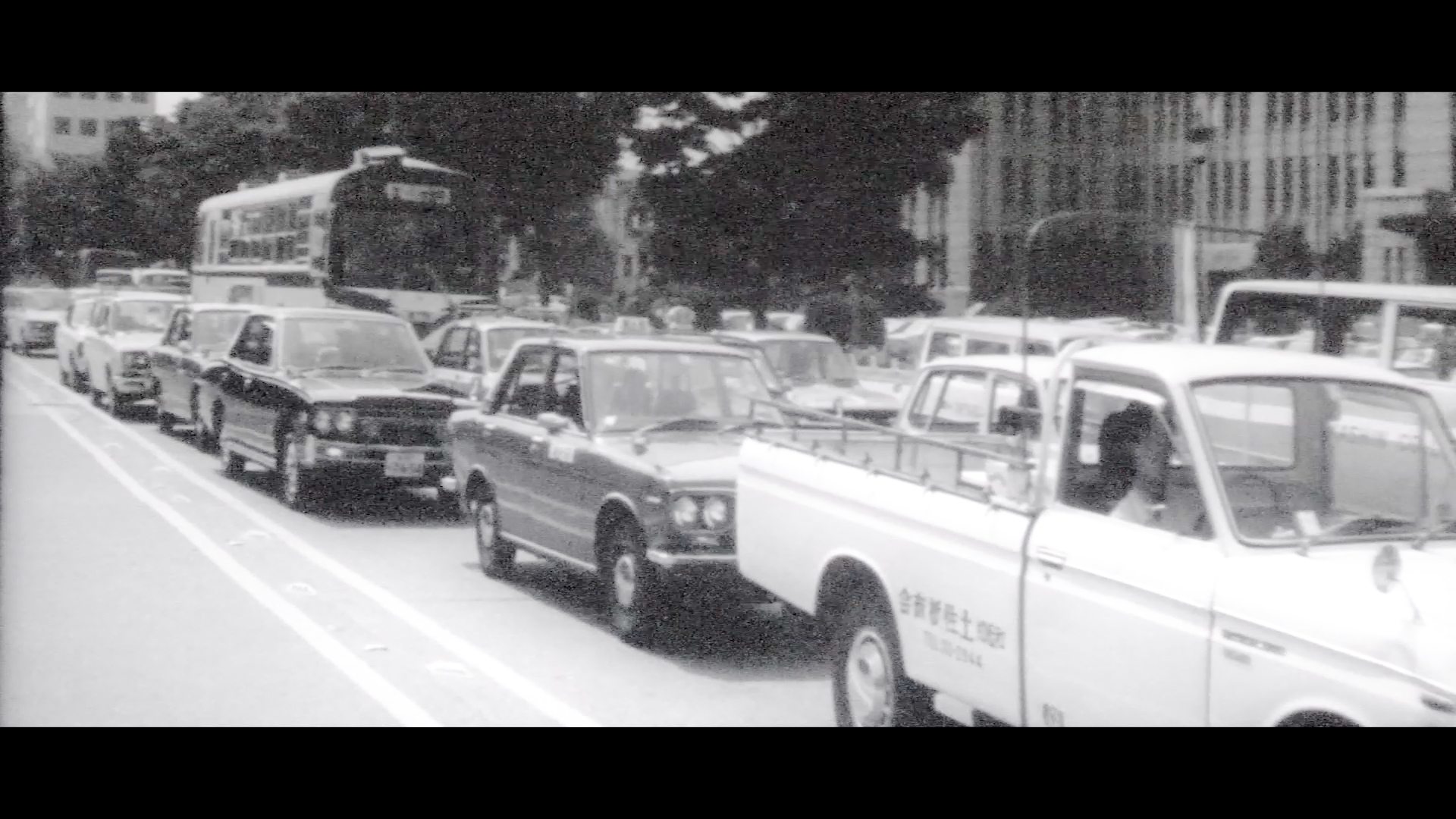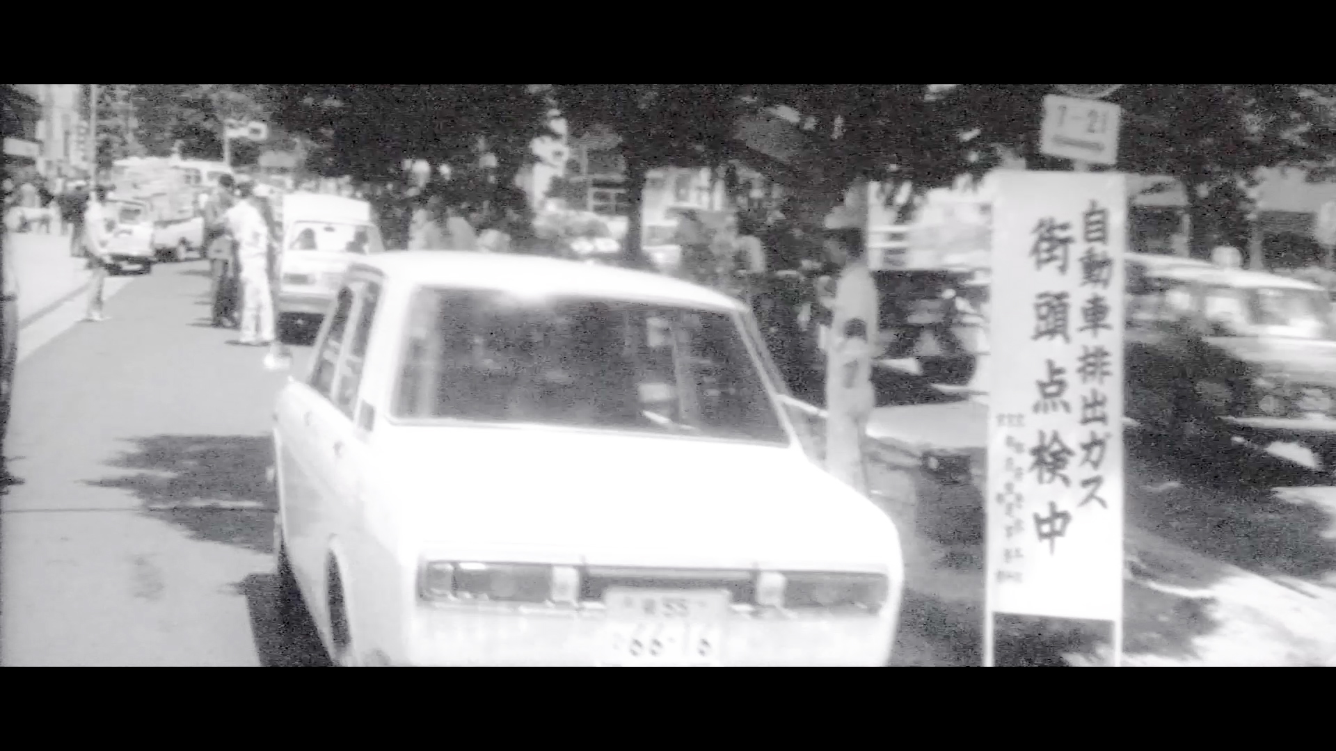 空気を汚す犯人、自動車。京都の車も30万台を超えました。車が撒き散らす一酸化炭素は増えるばかり。排気ガスの点検に厳しい目が光ります。公害追放、これは私たち人類の、大きな課題です。